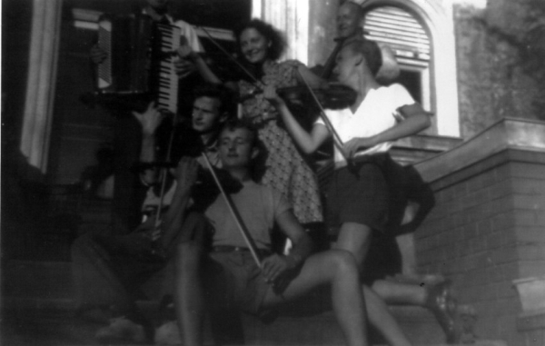 Music band, Krzysztof Penderecki playing the violin, Międzyzdroje, 1952