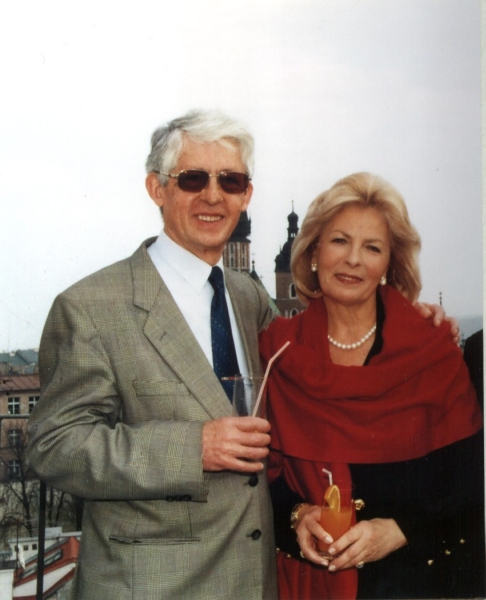 prof. Marek Stachowski i Elżbieta Penderecka na tarasie Akademii Muzycznej, 2003